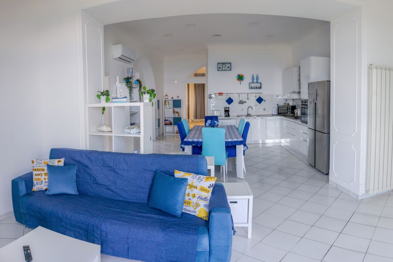 The holiday home is equipped with 3 bedrooms, 2 complete bathrooms with a shower, bidet and free toiletries, bed linen, towels, a flat-screen TV with streaming services, a dining area, a fully equipped kitchen and a balcony with sea views. For greater privacy, the accommodation has an independent entrance. Among the features of the property, to access the interior, at the entrance you will find a gate for child safety.