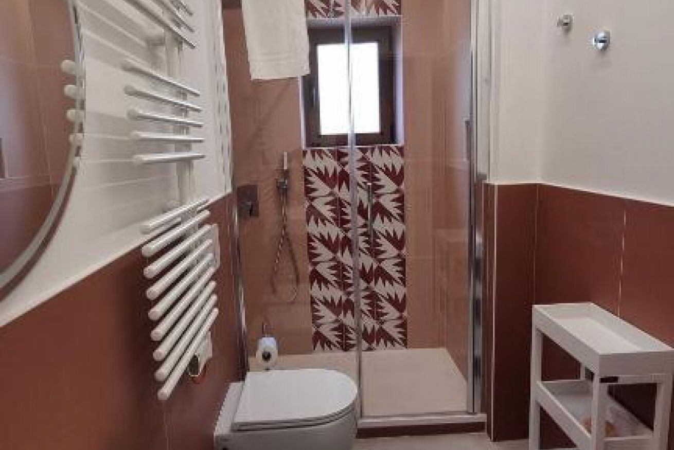 The room is independently air-conditioned and well-insulated, to guarantee rest and privacy even in the hottest hours. A small desk allows you to dedicate yourself to reading or personal activities, while the presence of a flat-screen TV, mini fridge, kettle for tea and herbal teas, wardrobe, safe and iron makes the stay complete and comfortable. Wi-Fi is free and easily accessible via QR code, and the daily cleaning service with linen included ensures constant care of the spaces.