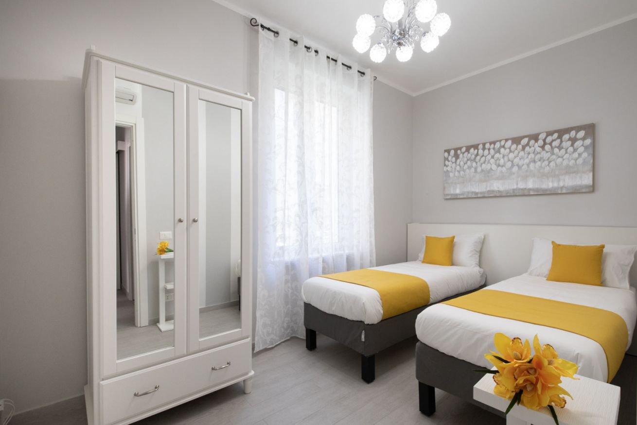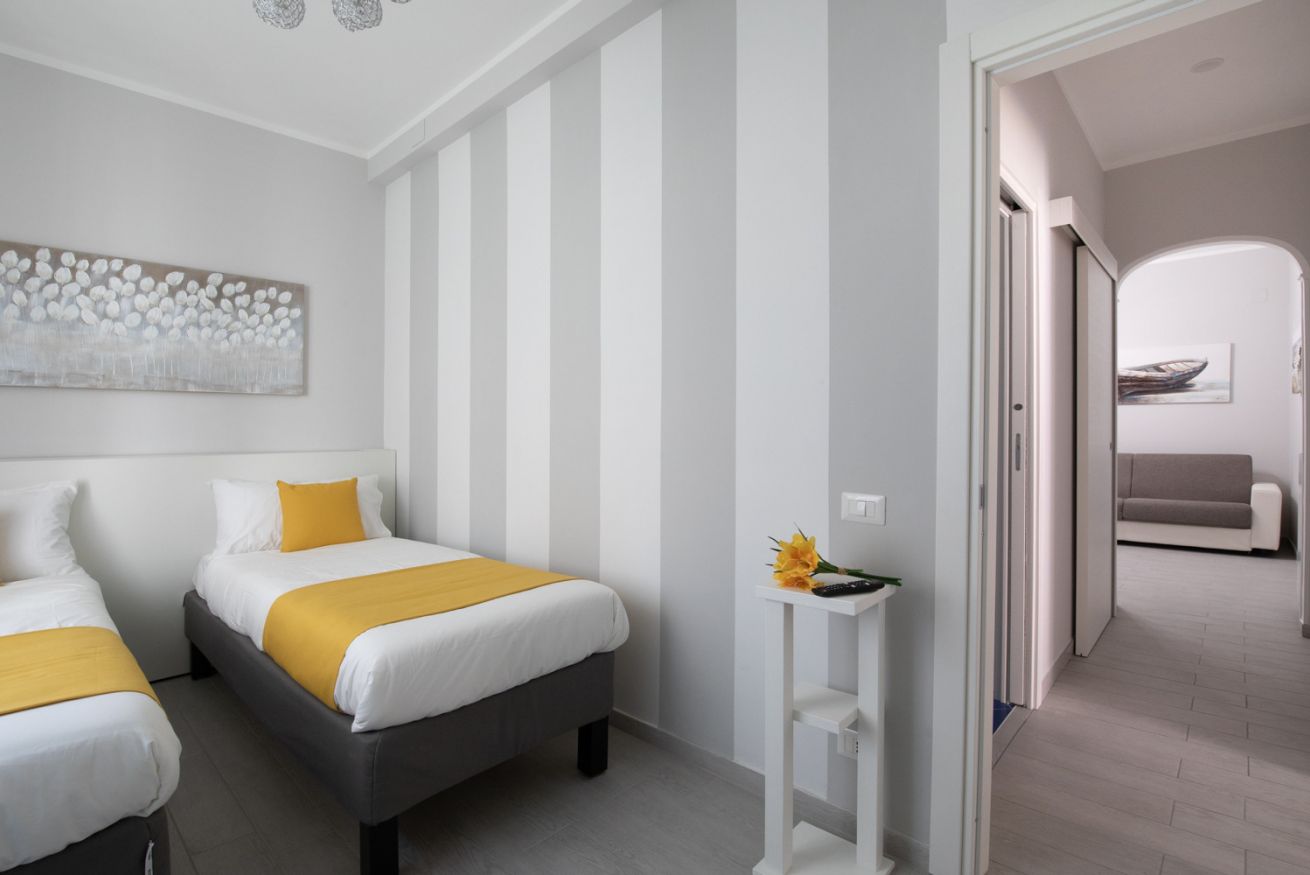 The sleeping area includes two bedrooms: one double and the other double or with single beds (on request), ideal for couples, friends or families. Each space is furnished with sobriety and attention, guaranteeing tranquility and well-being.
