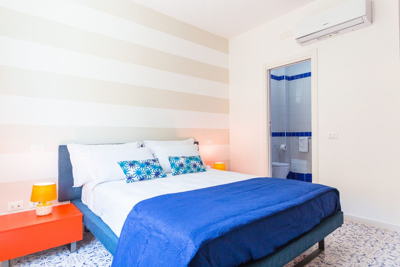 With its independent entrance, the bright "Amalfi" room, composed of a large window, has everything you need to spend a pleasant stay, including blackout curtains, air conditioning, safe, flat-screen TV, wardrobe, mini fridge, all framed by a tiled floor in the style of Vietri majolica.