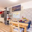 On the first floor there is a comfortable living room with a relaxation area, sofa, dining table and flat-screen TV on the wall, next to a kitchen equipped with a toaster, kettle, microwave oven and everything you need to cook freely.